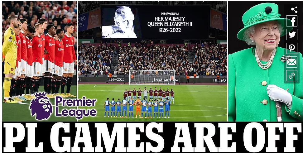 Umuyobozi wa Premier League witwa Richard Masters yavuze ko imikino yose yari iteganyijwe mu mpera z’iki Cyumweru harimo n’iyari buzakinwe ku wa Mbere Taliki 12, Nzeri, 2022 ibaye ihagaritswe.