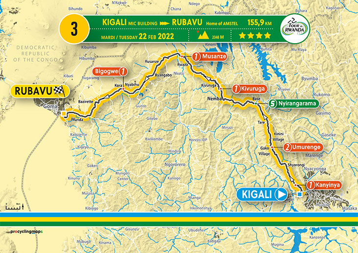 - 22/02/2022: Agace ka gatatu: Kigali (MIC) – Rubavu (155.9km)