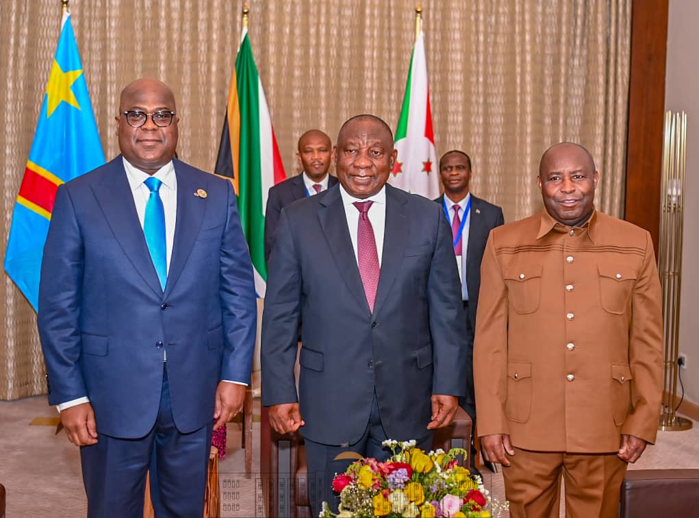 Perezida Cyril Ramaphosa, Felix Tshisekedi na Evariste Ndayishimiye bahuye baganira uko barushaho gukorana mu kurwana na M23.