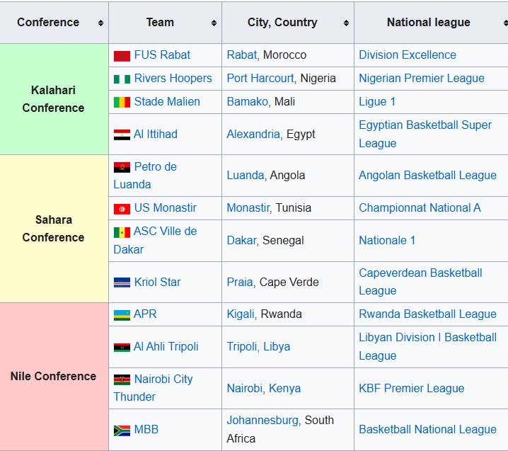 Adam Silver, ni Komiseri muri NBA, icyo gihe yavuze ko irushanwa rya BAL rizajya ryitabirwa n’amakipe 12 kandi ko ibihugu bizajya byakira imikino y’iri rushwanwa ari Angola, Misiri, Kenya, Morocco, Nigeria, u Rwanda, Senegal, Afurika y’Epfo na Tunisia.