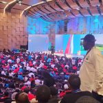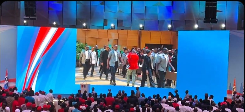 Paul Kagame usanzwe ari ‘Chairman’ w’Umuryango FPR –Inkotanyi yageze mu Intare Arena ahagiye kwemerezwa uzahagararira uyu muryango mu matora y’Umukuru w’igihugu azaba taliki 15, Nyakanga, 2024.