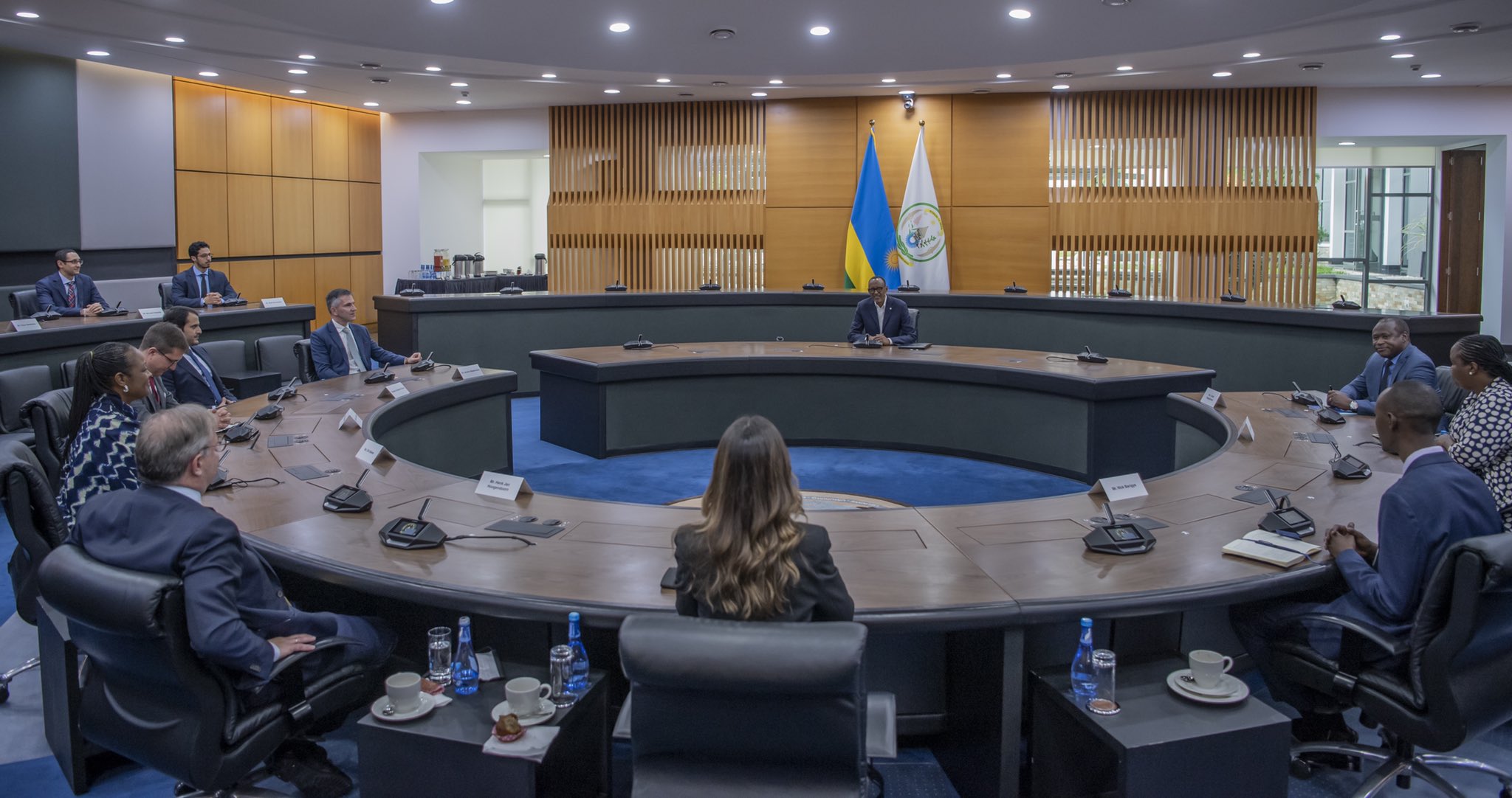 Mu Biro bye Perezida Paul Kagame yakiriye abayobozi bakuru b’Ihuriro mpuzamahanga ry’ibigo by’imari.