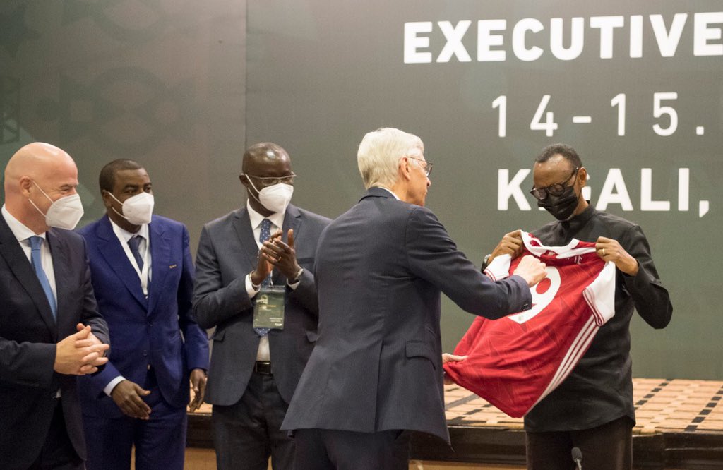 Perezida Paul Kagame yashimiye Arsène Wenger ku mirimo yakoze atoza Arsenal F.C. yo mu Bwongereza, nubwo yaje kuyivamo ubu akaba ari umuyobozi ushinzwe iterambere ry’umupira w’amaguru mu ishyirahamwe ry’uyu mukino ku Isi, FIFA.