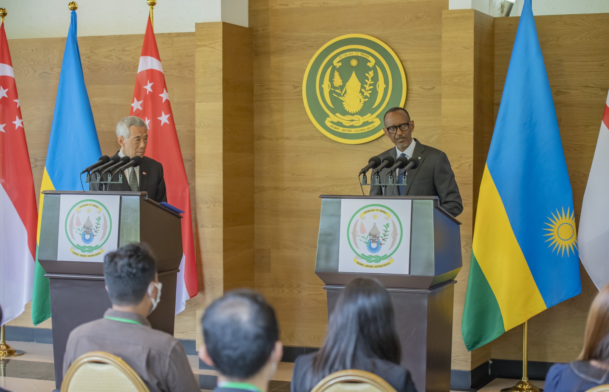 Ari kumwe na Minisitiri w’Intebe wa Singapore witwa Lee Hsien Loong, Perezida Paul Kagame yahaye abanyamakuru ikiganiro ababwira ko u Rwanda rwishimira intambwe ubufatanye bw’ibihugu byombi bumaze gutera.