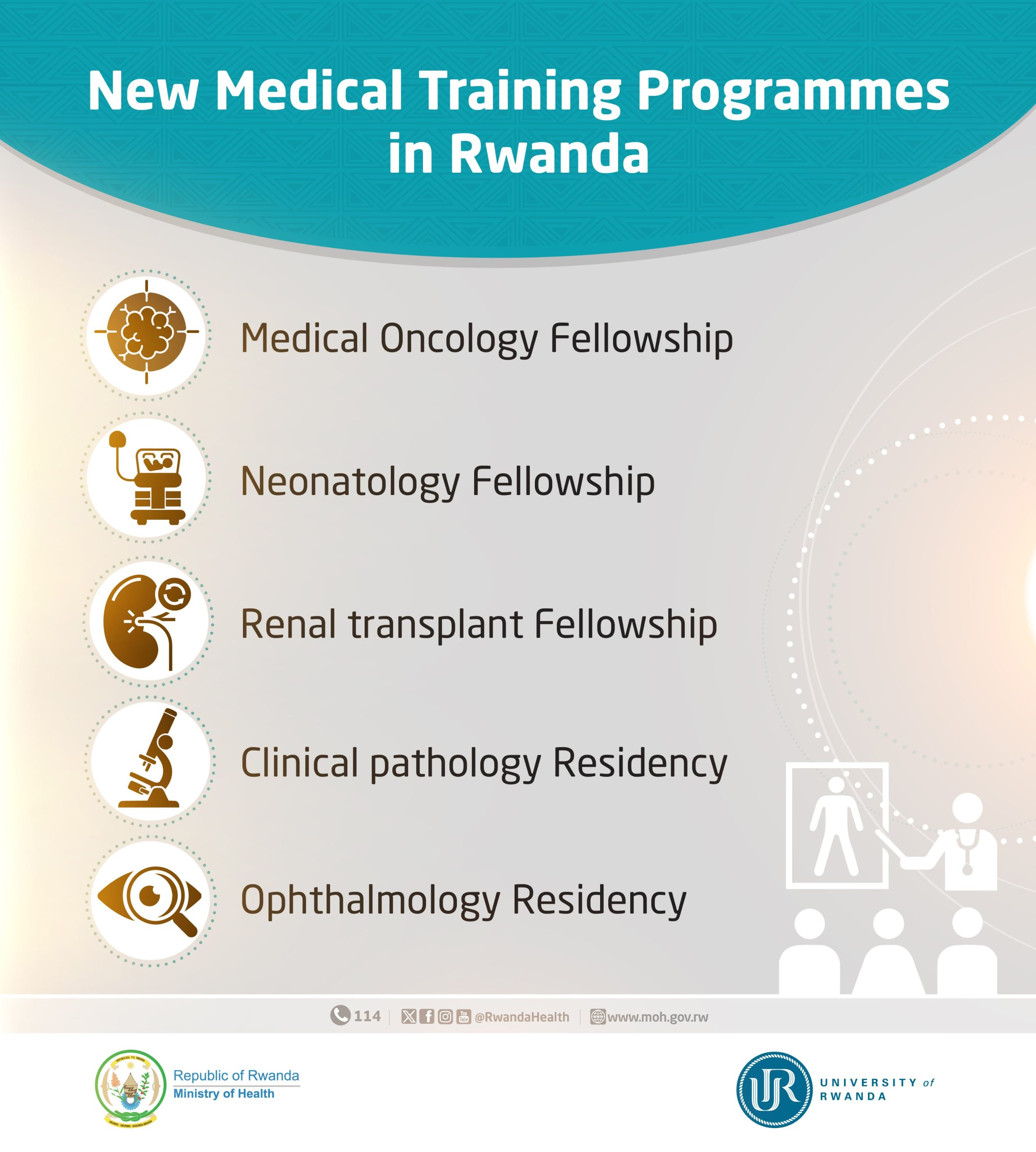 Nk’uko byatangajwe na Prof Dr. Charlotte Baguma wungirije umuyobozi w’ishami ry’ubuvuzi n’iby’imiti muri Kaminuza y’u Rwanda, iki kigo kigiye gutangiza amasomo mashya mu nzego zitandukanye z’ubuvuzi.