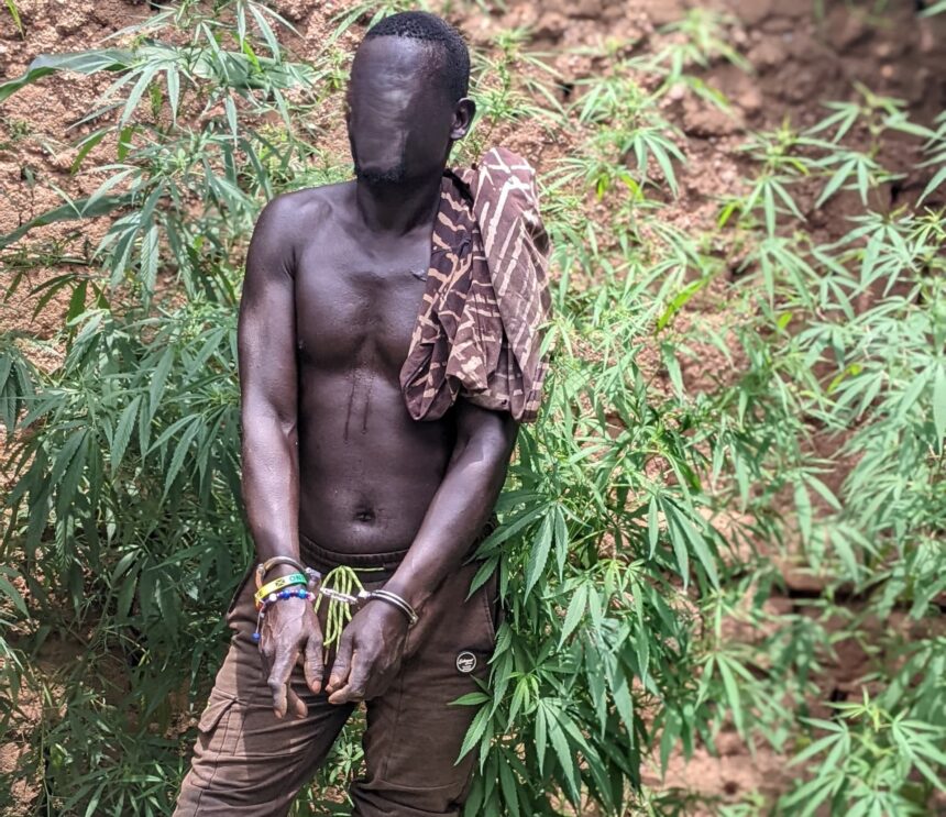 Emmanuel Hitimana wo mu Mudugudu wa Kabere, Akagari ka Nyagishubi, Umurenge wa Nyarubaka, Akarere ka Kamonyi yafashwe nyuma y’uko inzego zisanze iwe hahinze urumogi.