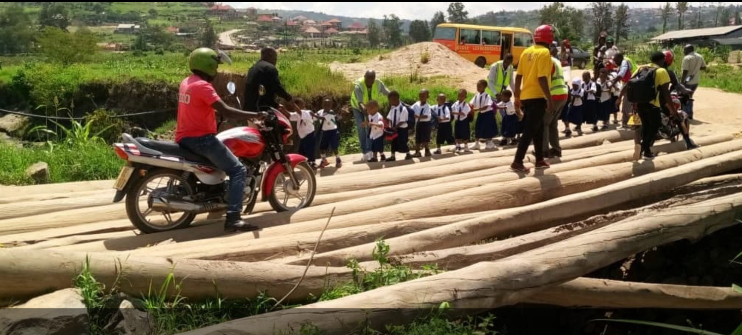 Iyo abana bavuye ku ishuri bacyuwe n’imodoka, zibageza ku kiraro zikabakuramo bakambutswa bafatanye urunana ku kiraro umwe ku wundi, bagera hakurya bagafata izindi zibajyana ku mashuri,
