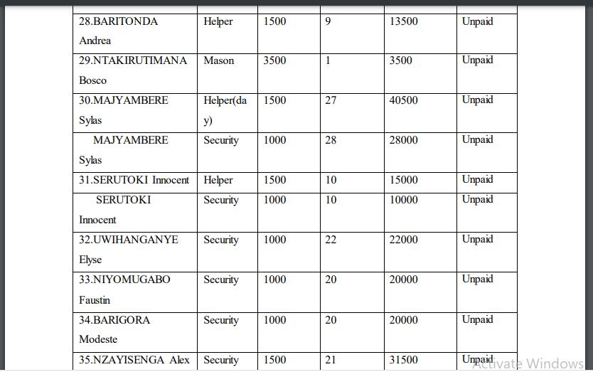 Taarifa ifite urutonde rw’abantu bavuga ko bakoze ku muhanda Perezida Kagame yemereye abaturage bo muri Karongi mu Murenge wa Rugabano kugira ngo ujye ubafasha mu guhahirana ariko rwiyemezamirimo witwa Jean Claude Nzabonimana ahemba bamwe abandi arabambura. Urutonde rwerekana ko bose hamwe abarimo Frw 4,292,000.