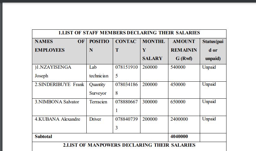 Bati: “ Ikibabaje ni uko twakoze ariko tukaba twarabuze uwatwishyura kuko uyu nyiri Company duherukana mu gihe twakoraga ariko mu gihe cyo kwishyurwa umushahara wacu ,ntitwongeye kumuca iryera.”
