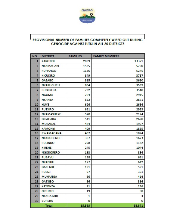 Nyuma y’Intara y’Amajyepfo, Uturere twa Kicukiro na Gasabo nitwo dufite undi mubare munini w’imiryango y’Abatutsi yishwe ikazima.