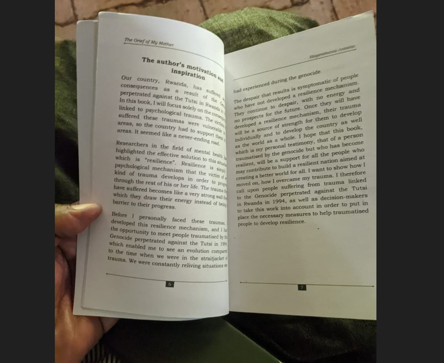 Avuga ko impamvu yise igitabo cye ‘Agahinda ka Mama’ avuga ko akigera muri AVEGA yaje gusanga ari ngombwa ko asubiza amaso inyuma asanga hari imbaraga abo babyeyi yavuraga bari bifitemo aho batuye kandi bakabikorana agahinda k’ibyababayeho.
