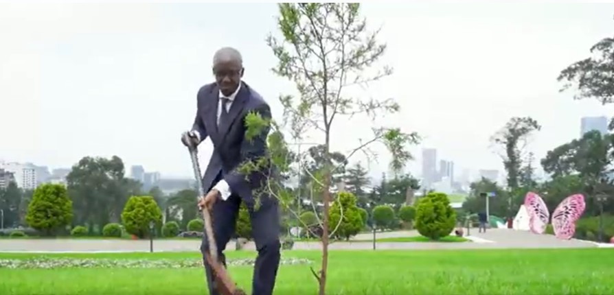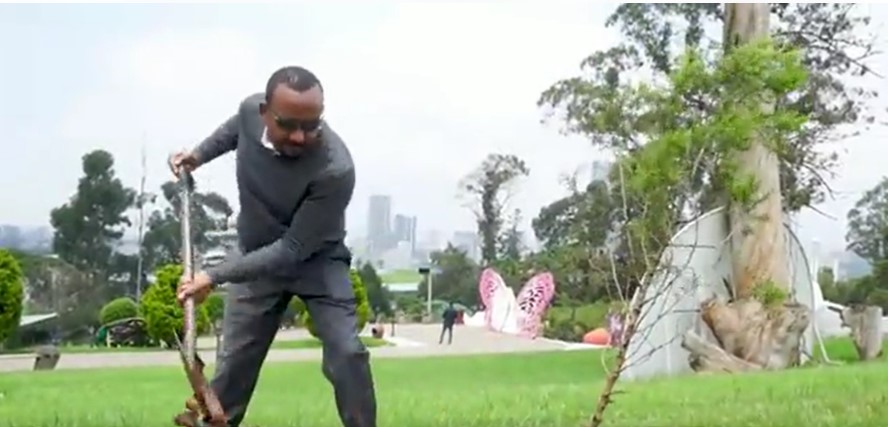 Minisitiri w’ububanyi n’amahanga Dr. Vincent Biruta na Major Generel Joseph Nzabamwita uyobora Urwego rw’igihugu rw’iperereza n’umutekano bafatanyijea Minisitiri w’Intebe wa Ethiopia gutera ibiti muri iki gihugu.