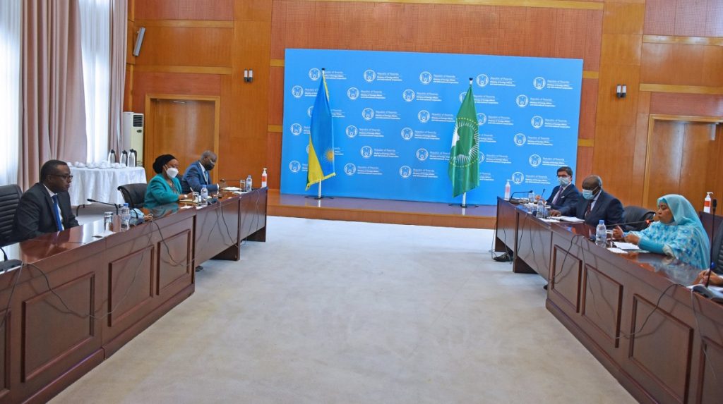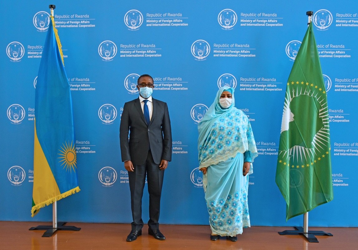 Dr Biruta Vincent, Minisitiri w’ububanyi n’amahanga w’u Rwanda kuri uyu wa Mbere tariki 29, Werurwe, 2021 yahuye na Madamu Amira Elfadil, akaba ari Komiseri mu Muryango w’Afurika Yunze Ubumwe ushinzwe imibereho.