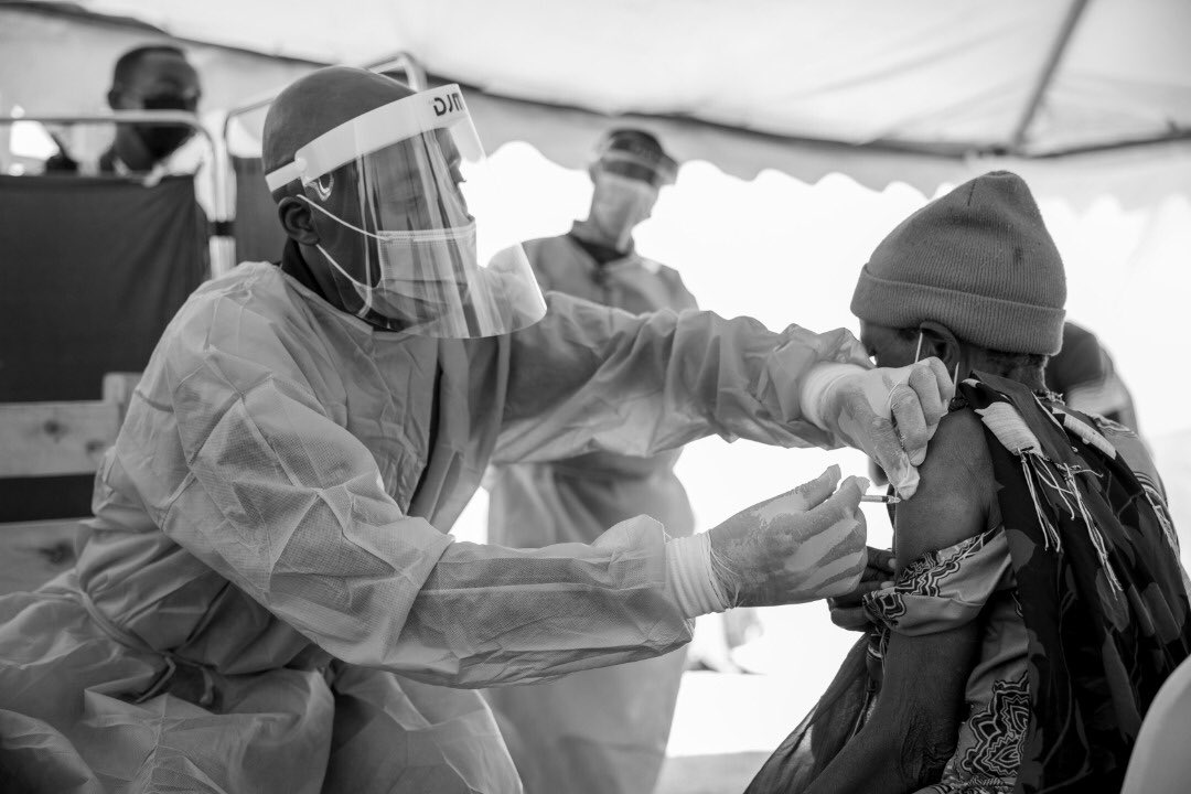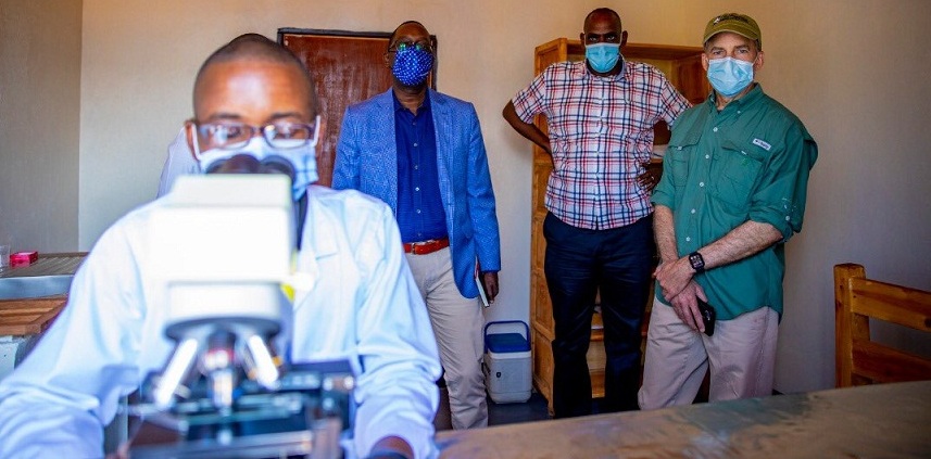 Minisitiri w’ubuzima Dr Daniel Ngamije yaherekeye H Fisk Johnson washinze akayobora Ikigo gikora imiti kitwa SCJohnson bajya gusura ivuriro riri ahitwa Saruhembe mu Murenge wa Mahama, Akarere ka Kirehe mu rwego rwo gukurikirana uko abahaturiye bakingirwa COVID-19.