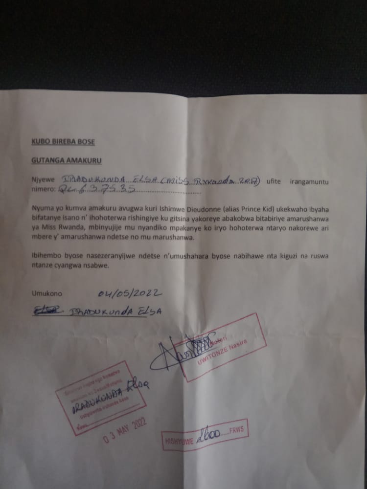 Icyakora Elsa uyu hari ibaruwa aherutse kwandika avuga ko we nta hohoterwa yigeze akorerwa, ndetse ngo ibyo yari yaremerewe byose nka Miss Rwanda 2017 yarabihawe kandi nta kiguzi yigeze atanga icyo ari cyo cyose.