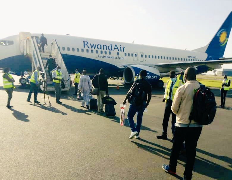Ni ubwa Mbere abagenzi bahagurutse i Kigali berekeza Bangui bari mu ndege za RwandAir. Ku ikubitiro yajyanye abantu 37 barimo Minisitiri w’ubucuruzi n’inganda Madamu Soraya Hakuziyaremye na Minisitiri w’Ibikorwa remezo Amb Claver Gatete.