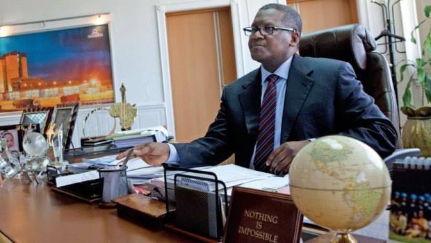 Abarirwa Miliyari 19.2 $. Umwe mu mishinga ye ni ubucuruzi bwa Sima yise Dangote Cement, iyi sima ikaba ari yo imwinjiriza menshi kuko mu mwaka wa 2019 yamwinjirije miliyari 2.5$, ni ukuvuga miliyari 891 z’ama Naira( amafaranga akoreshwa muri Nigeria.).