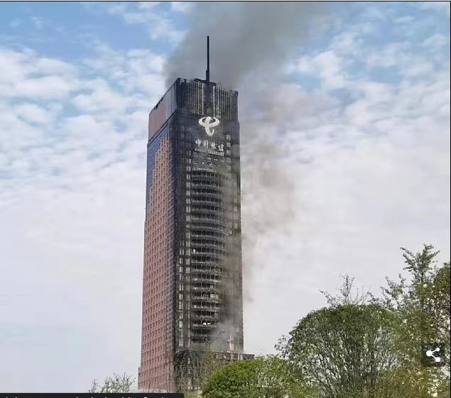 Mu Mujyi wa Changsha mu Bushinwa yagashwe n’inkongi. Amafoto yatangajwe na CCTV arerekana inkongi ikongora igice cy’imwe cy’uyu muturirwa ugeretse inzu 42.