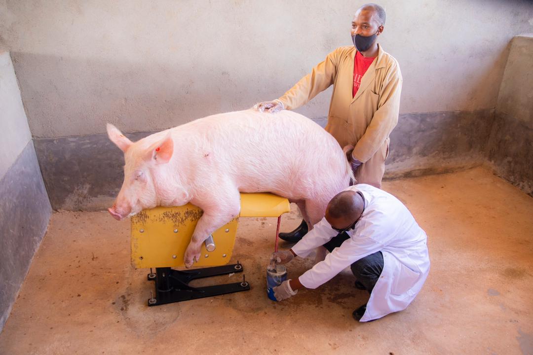 Abaganga b’amatungo bo muri RAB bavuga ko mu Rwanda hamaze guhugurwa bagenzi babo 500 kugira ngo nabo bazahugure abandi uko gutera ingurube intanga bikorwa.