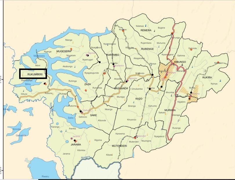 Imiterere yaho [Rukumberi] ituma haba nk’ikirwa kuko hakikijwe n’amazi y’ibiyaga bya Mugesera, Sake na Birira n’Umugezi w’Akagera.