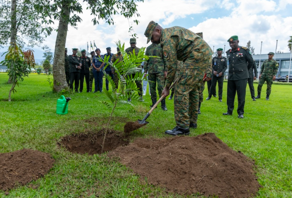 Umugaba Mukuru w’Ingabo za Uganda (UPDF) Gen Muhoozi Kainerugaba, aherekejwe na mugenzi we w’u Rwanda, Gen Mubarakh Muganga, yasuye Ishuri Rikuru rya Gisirikare rya Nyakinama riherereye mu Karere ka Musanze ahatera igiti.