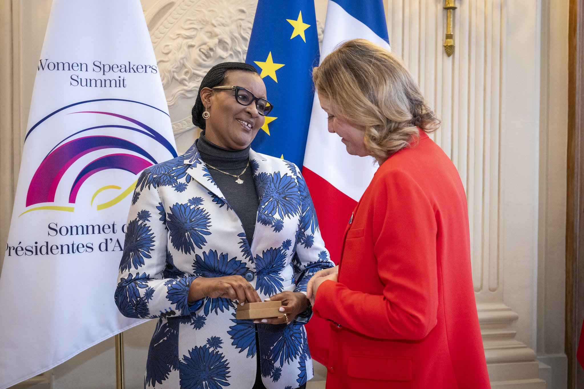 Donatille Mukabalisa uyobora Inteko ishinga amategeko y’u Rwanda ari i Paris mu Bufaransa mu Nama y’abagore bayobora Inteko zishinga amategeko.