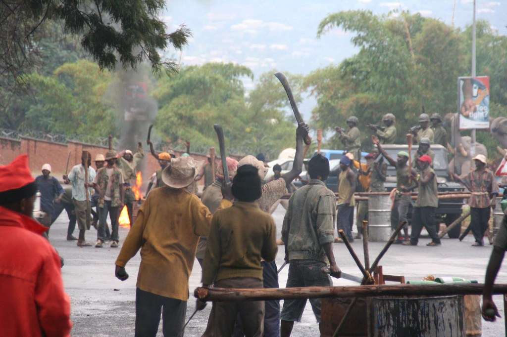 Ils disaient être à la recherche de « rwandais », notamment ceux que ce magasin hébergerait, afin de les renvoyer chez eux. Ici, ils scandent, soutenus par la foule: « yo rwandais toko kata yo kingo » (càd « toi, rwandais, nous allons te trancher la gorge ») 2/4 pic.twitter.com/nPuei1TKzQ