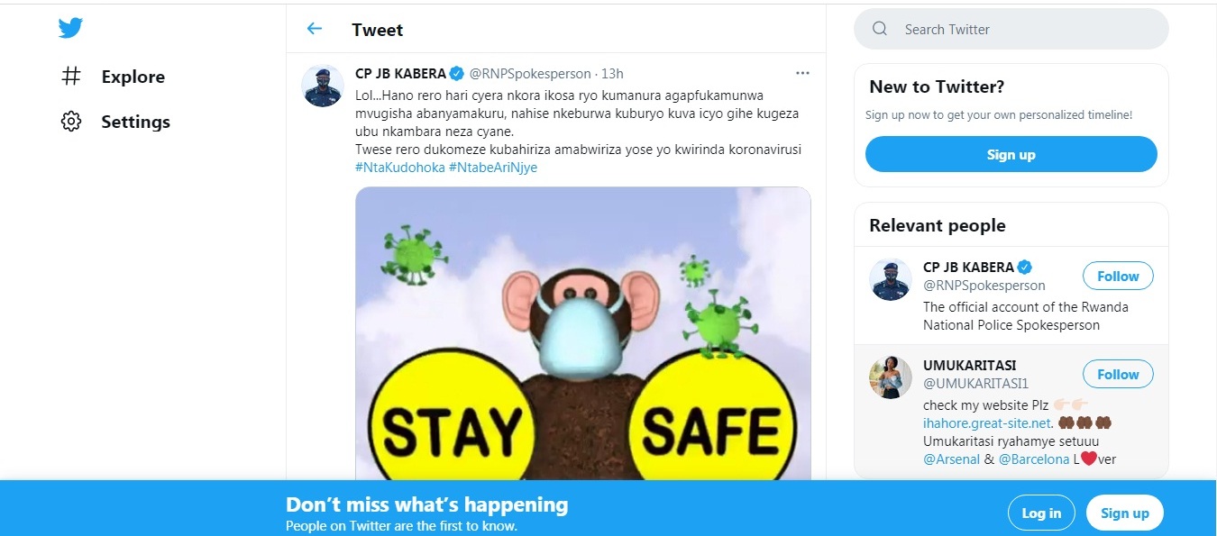 Ku mbuga Polisi ihuriraho n’abanyamakuru byari byiriwe byabaye ikiganiro gishyushye nyuma y’uko kuri Twitter uwiyise UMUKARITASI abajije CP Kabera impamvu we yigeze kugaragara atambaye neza agapfukamunwa.