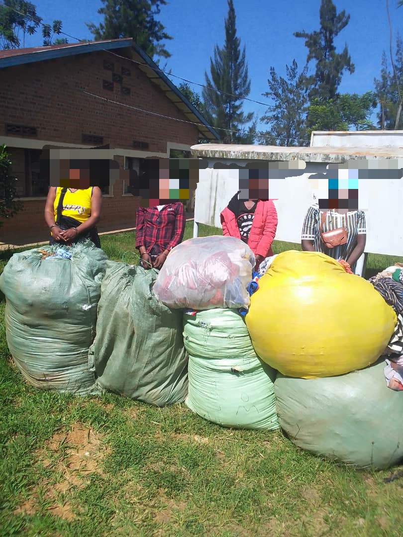 Ati: “Nyuma yo guhabwa amakuru n’abaturage ko hari abagore bari bazanye imyenda ya caguwa kuyicururiza mu isoko rya Rwesero, hahise hategurwa igikorwa cyo kubafata, abapolisi babasangana amabalo atandatu y’imyenda ya caguwa bari batangiye gufungura ngo bayigurishe.”
