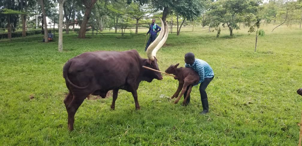 Abashumba b’inyambo ziherutse kumurikirwa ku Rwesero mu Karere ka Nyanza baramukiye mu byishimo by’uko imwe muri zo yabyaye inyana.
