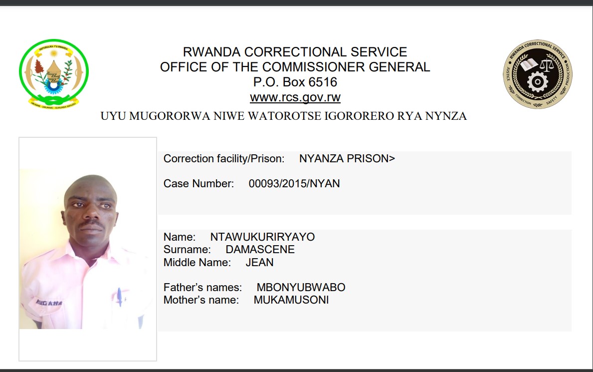 Ntawukuriryayo yakitiwe gufungwa burundu mu mwaka wa 2015, akurikiranyweho ubwicanyi.