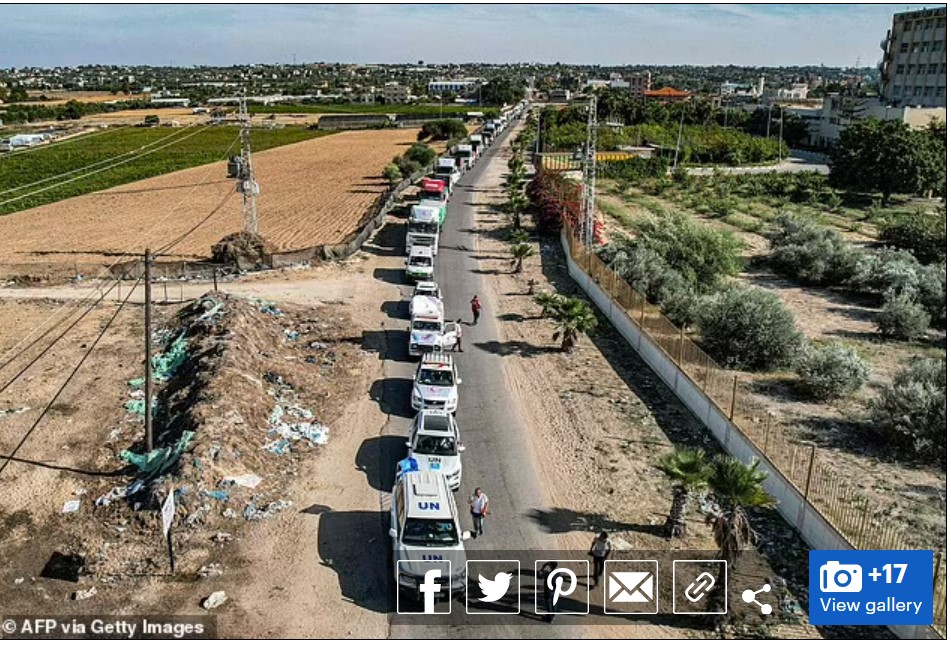Amakamyo 20 yari amaze iminsi ategeje kwemererwa kuva mu Misiri ngo ashyire imfashanyo abahunze Palestine yatangiye kugera yo. Ni igikorwa kizacungwa n’Umuryango w’Abibumbye wita ku mpunzi.