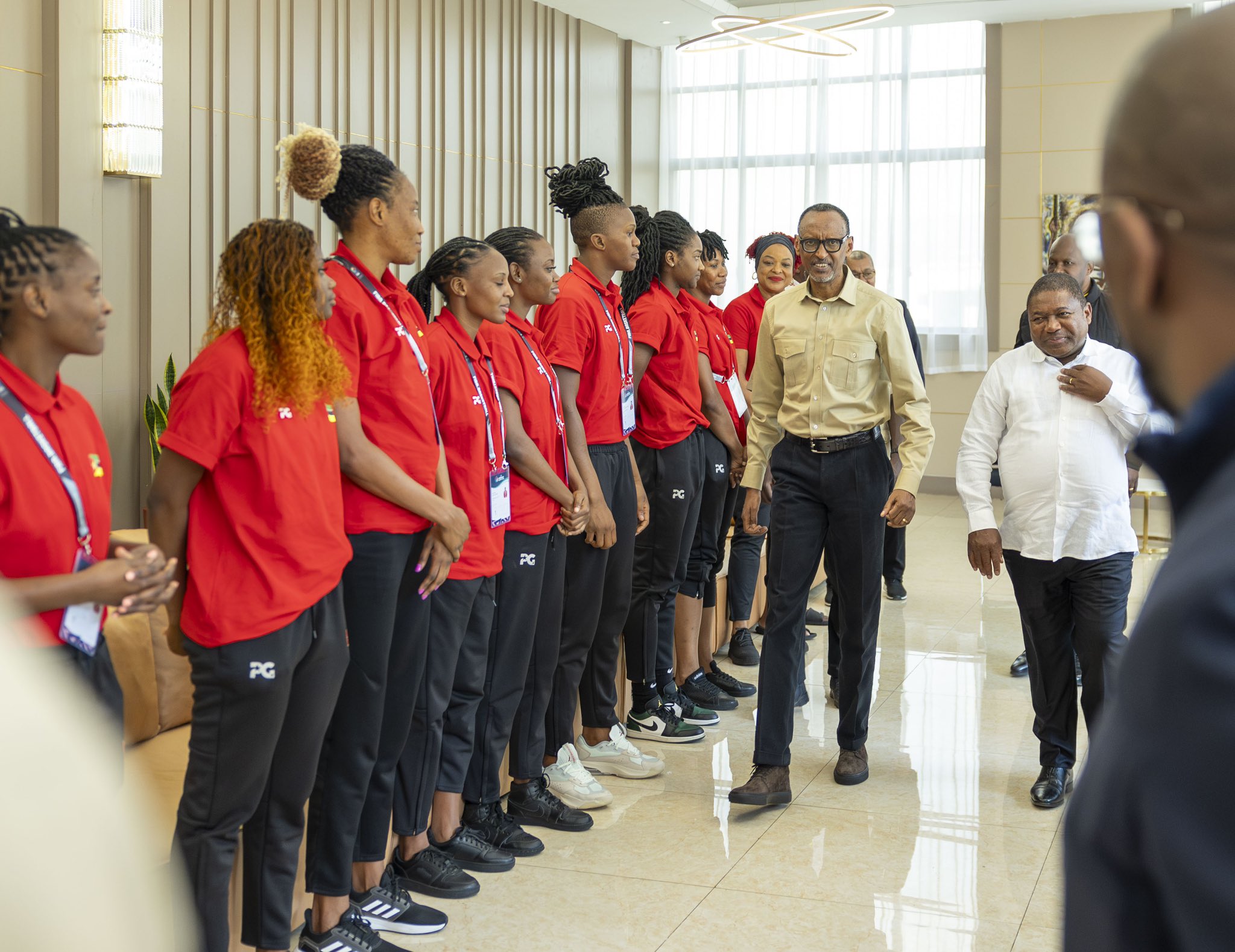 Perezida wa Mozambique Filip Nyusi yaraye ahuye n’ikipe ya Basket y’igihugu cye y’abagore iri mu Rwanda mu irushanwa nyafurika ry’uyu mukino mu rwego rw’abagore.