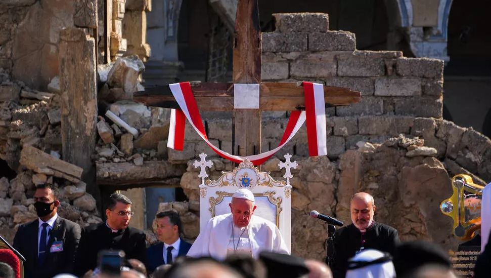 Umushumba wa Kiliziya Gatolika ku Isi Papa Francis kuri iki Cyumweru yasomeye Misa mu majyaruguru ya Iraq, mu gice cyahozemo urusengero rukomeye ariko rwaje gusenywa n’ibisasu by’abarwanyi ba Islamic State.