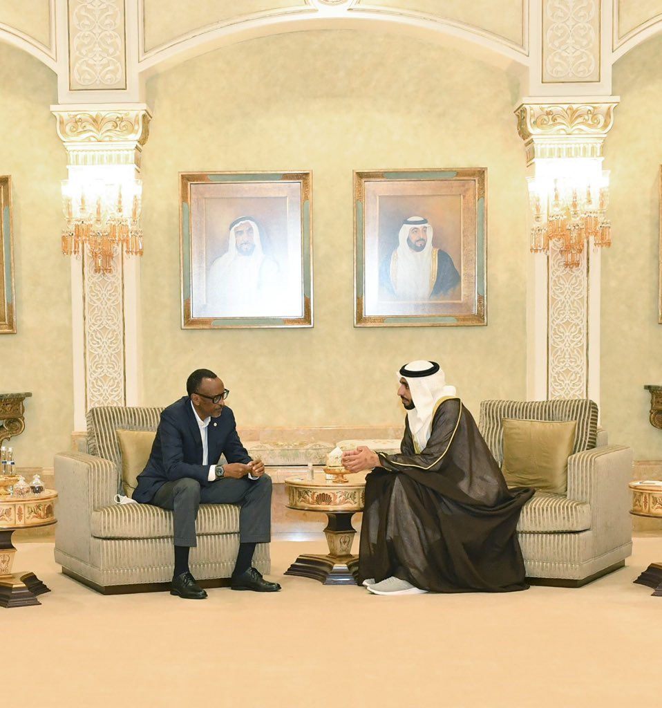 Sheikh Shakhboot bin Nahyan Al Nahyan, Minister of State of Foreign Affairs and International Cooperation welcomes President Kagame to Abu Dhabi, where he will pay his respects to H.H. Sheikh Khalifa bin Zayed Al Nahyan and offer his condolences to H.H. Sheikh @MohamedBinZayed. pic.twitter.com/RNKsob78bM