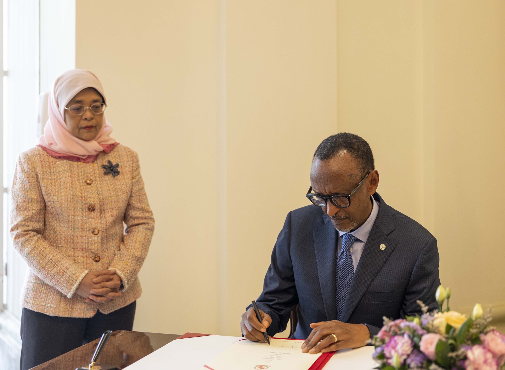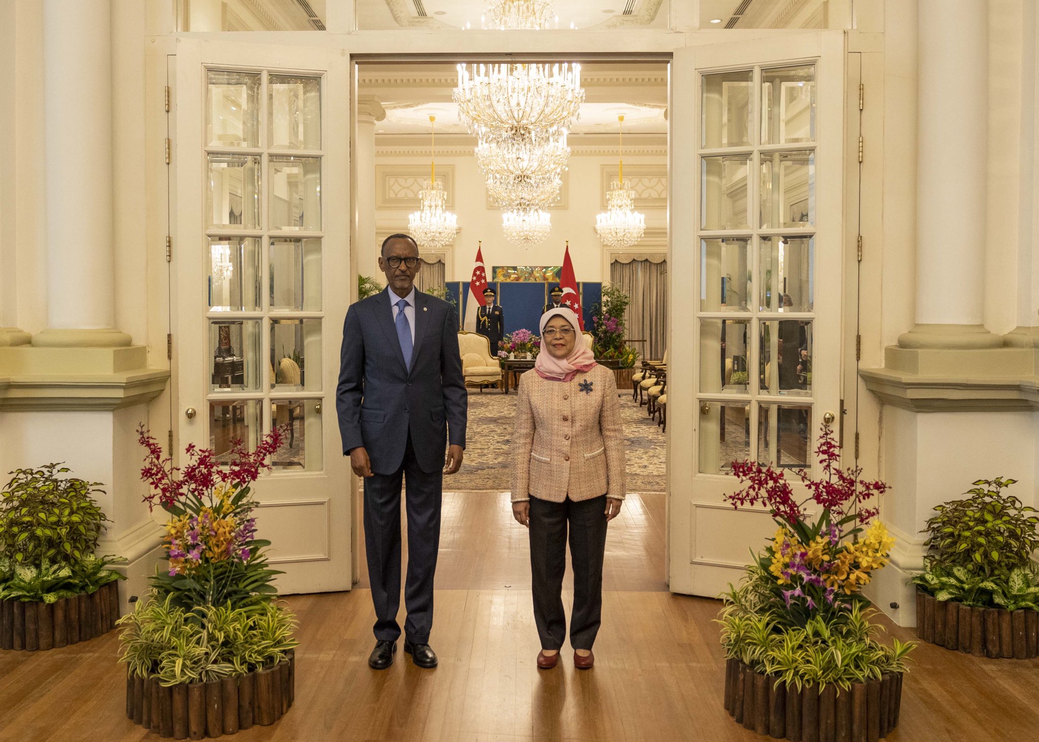 Umukuru w’u Rwanda Paul Kagame yasuye mugenzi we uyobora Singapore witwa Madamu Halimah Yacob uyobora Singapore baganira uko umubano w’ibihugu byombi wakomeza kuzamurwa.