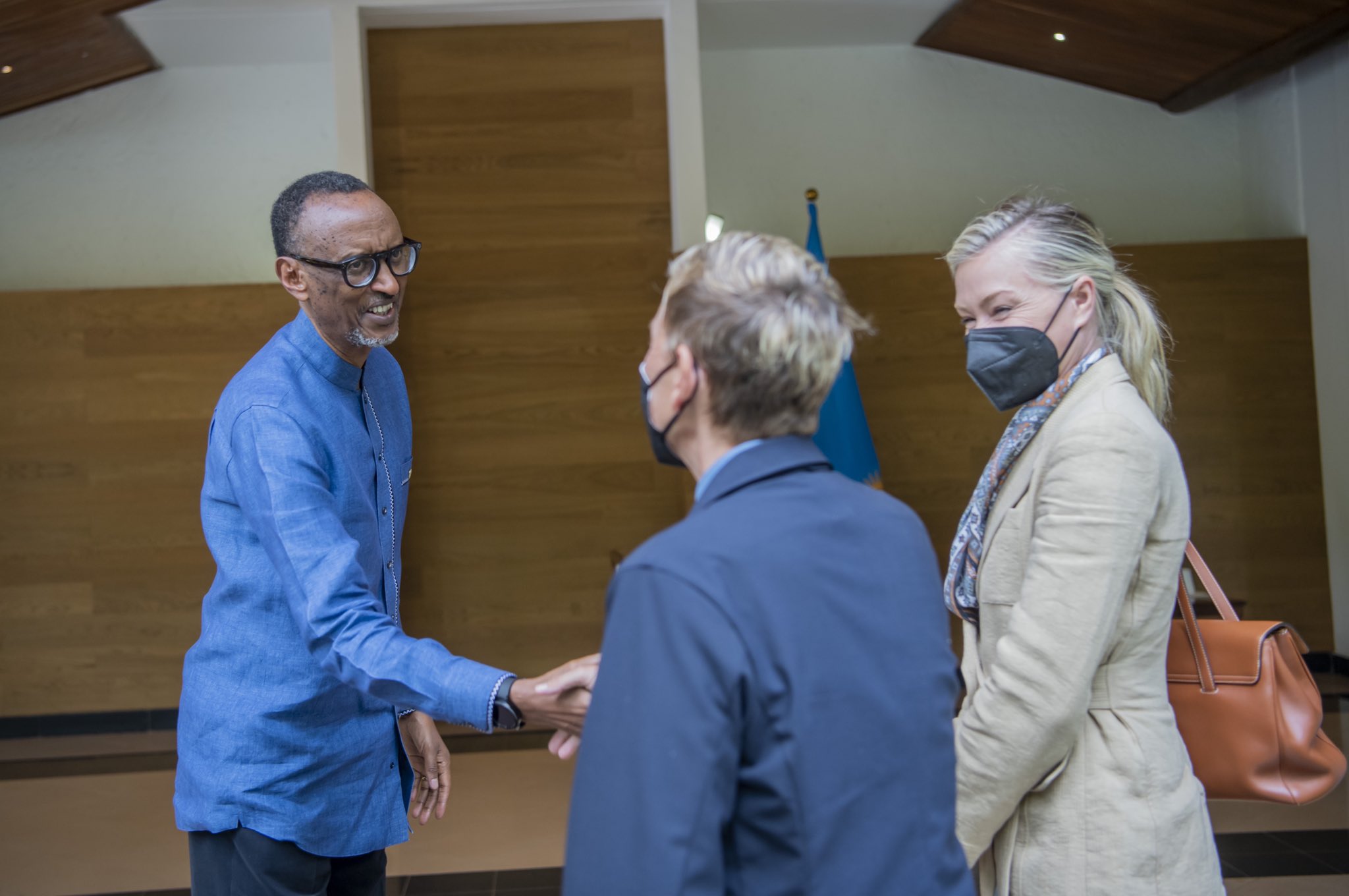 Perezida Kagame yamwakiririye Ellen DeGeneres mu Biro bye ari kumwe n’umukunzi we witwa Portia.