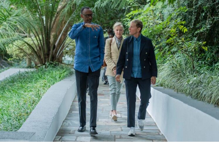 Umukuru w’u Rwanda Paul Kagame yakiriye mu Biro bye Ellen DeGeneres Umunyamerikakazi wafunguye ikigo mu Kinigi gifite intego yo gufasha abashakashatsi kurushaho kumenya ingagi zo mu birunga.
