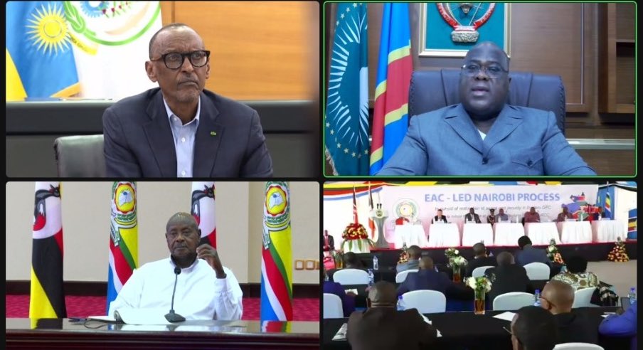 Perezida w’u Rwanda Paul Kagame, uwa Uganda Yoweli Museveni, uwa DRC Felix Tshisekedi, uw’u Burundi Evariste Ndayishimiye ndetse n’abahagarariye Repubulika ya Tanzania n’iya Sudani y’Epfo nabo bakurikiranye iyi nama ikomeye.