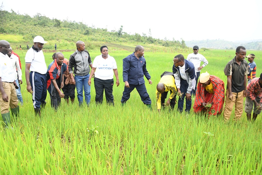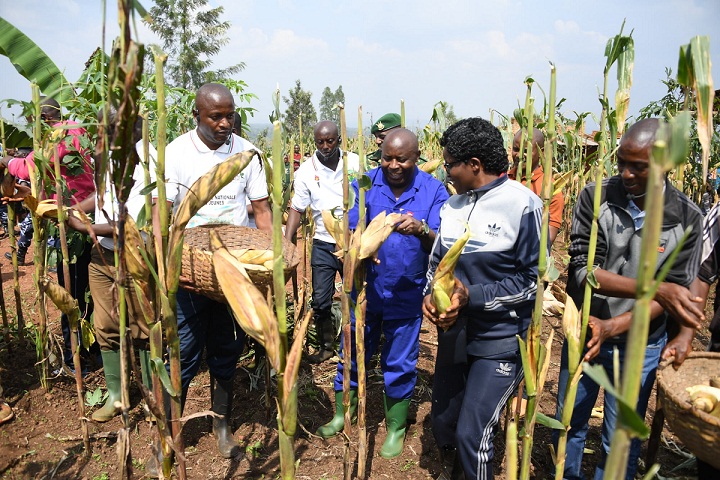Yari kumwe n’abayobozi bo muri kariya gace n’abandi bayobora urwego rw’ubuhinzi ku rwego rw’igihugu.