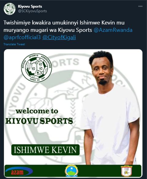 Urubuga rwa Twitter rwa Kiyovu Sports rwanditse ko bishimiye kumwakira mu muryango mugari wa Kiyovu.