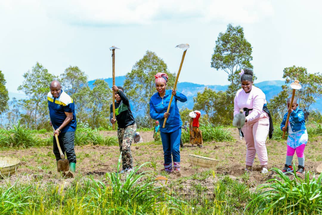 Birashoboka ko ari we Perezida wa Repubulika iyo ari yo yose ugaragaye mu murima ari guhingana n’umugore we. Uwo ni Perezida w’u Burundi Evariste Ndayishimiye wahinganaga n’umugore we bakikijwe n’abaturage nabo bari guhinga.