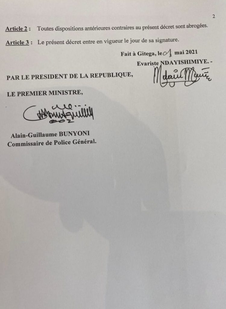 Ni ubutumwa bwasohotse mu itangazo ryashyizweho umukono na Minisitiri w’Intebe w’u Burundi, Alain Guillaume Bunyoni.