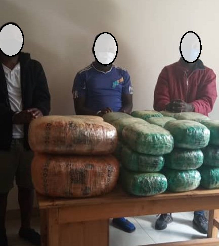 Abafashwe barimo abamotari babiri n’umusore umwe ushinjwa ko ari we wari ushinzwe kurinda ahabikwa urwo rumogi.