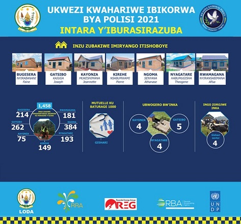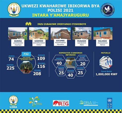 Uretse kuba aba baturage barubakiwe inzu, hari ibindi bikorwa Polisi y’u Rwanda yafashije abaturage kugera ho mu rwego rwo kuzamura imibereho yabo harimo kubaha ibyuma bitanga amashanyarazi aturuka ku mirasire.