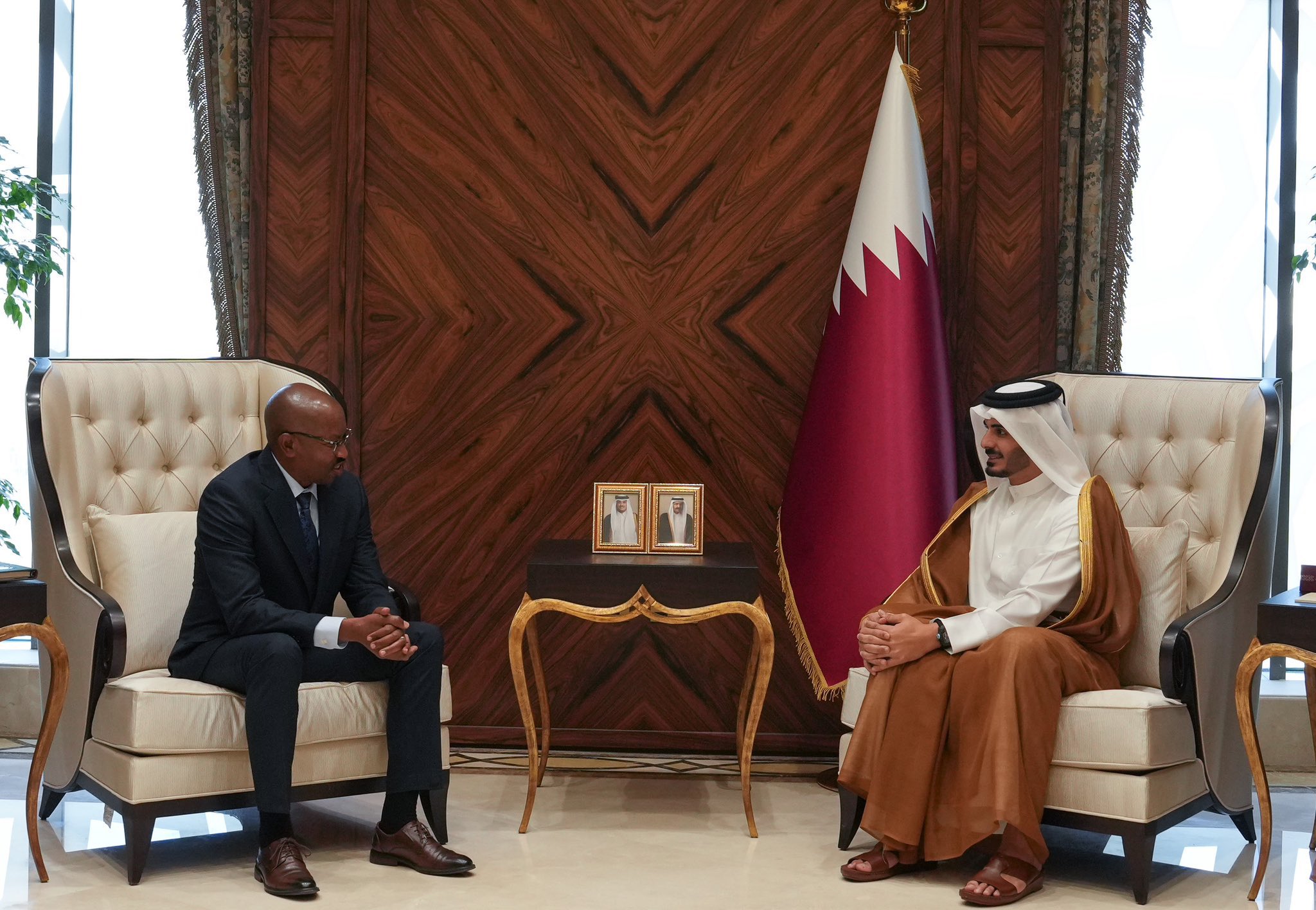 Minisitiri Gasana na mugenzi we, Sheikh Khalifa, bagarutse ku bufatanye bw’ibihugu byombi mu bijyanye n’umutekano banaganira ku cyakorwa mu rwego rwo kwihutisha ubwo bufatanye.