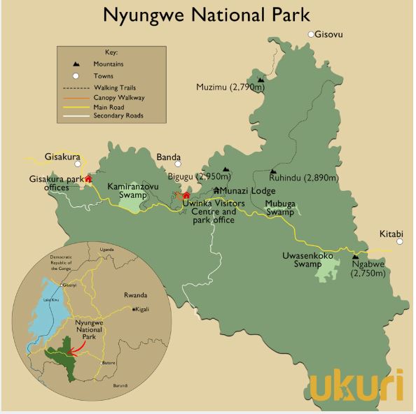 Jean-Guy Afrika uyobora RDB kandi yatashye na hoteli iri muri iri shyamba ryiswe Munazi Eco-Lodge n’indi nzira ikozwe mu migozi iziritse ku mapine hejuru asobekeranye kandi y’urwunge aca hejuru ya Gisakura mukerarugendo aba agomba kugendagendaho gahoro gahoro, kuko uhushije aho bakandagira bishobora kukumerera nabi.