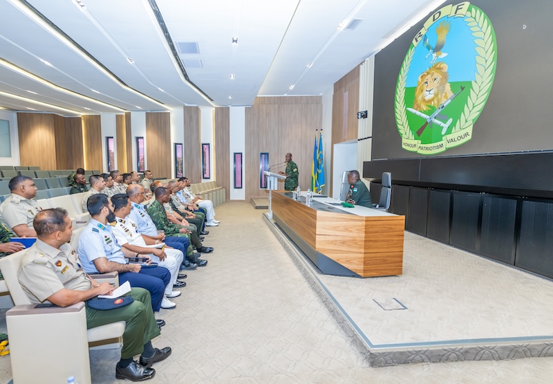 Umuvugizi w’ingabo z’u Rwanda Brig Gen Ronald Rwivanga niwe wabakiriye ariko iby’uko umutekano mu Karere u Rwanda ruherereyemo wifashe babisobanurirwa na Colonel Stanislas Gashugi uyobora ibikorwa muri RDF.