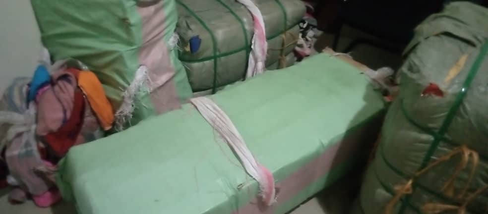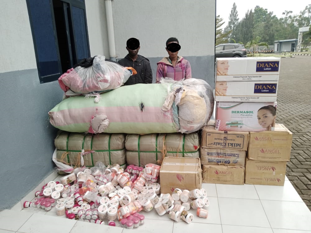 Bafatanywe ibilo 69 b’imyanda ya cagua, amabaro 3000 arimo ibikapu bahahisha, amabaro 1,534 arimo amavuta ya mukorogo atamewe, imiguru 35 y’inkweto za caguwa zambawe, amabaro 11 arimo ibitenge bya magendu, ndetse n’udupfunyika 11 turimo ikinyobwa cyongera imbaraga kitwa Exo.