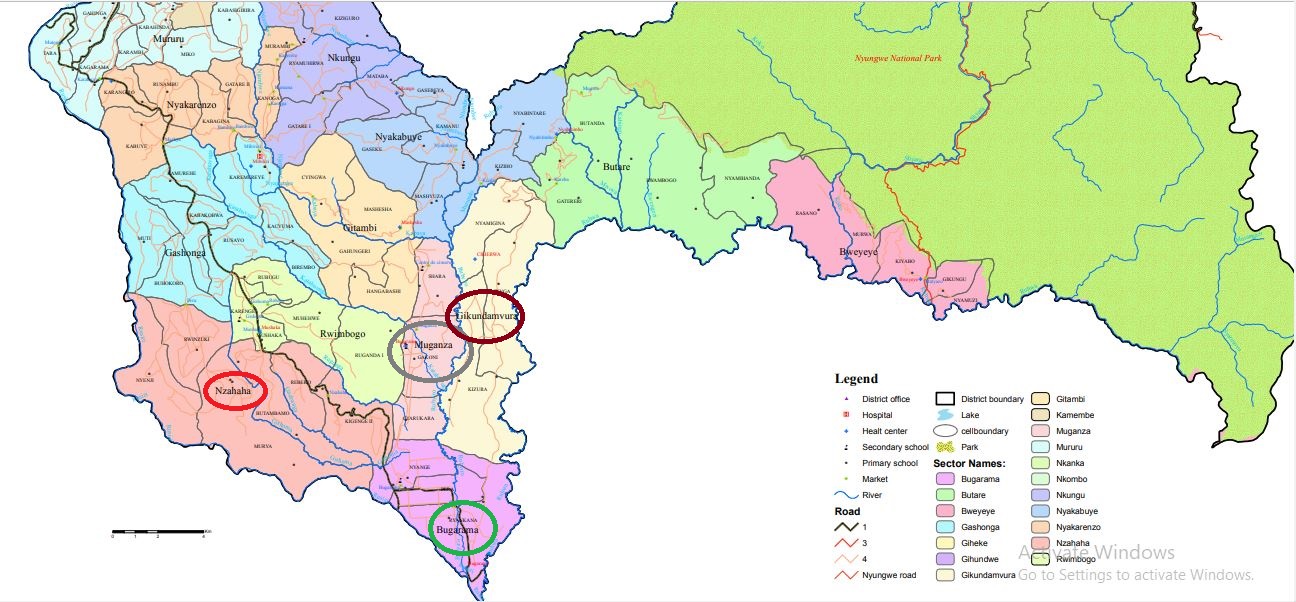 Ngo byiganje mu Mirenge ya Nzahaha, Bugarama, Muganza, Gikundamvura na Butare.